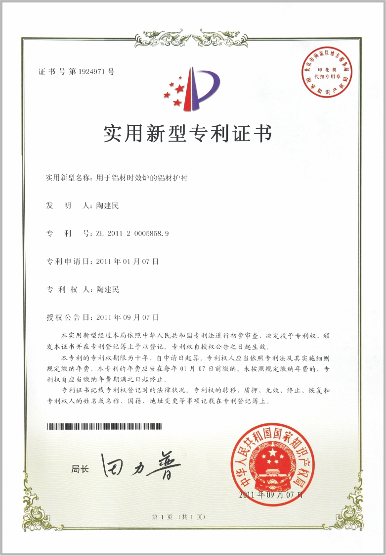 实用新型专利证书